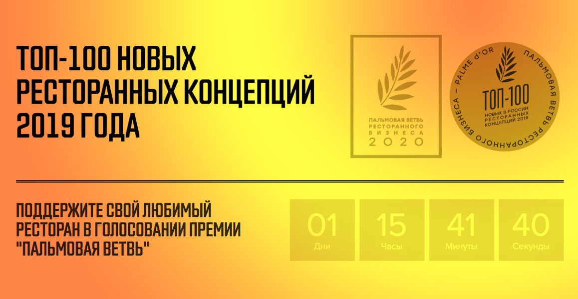 | | | | | | | | Остался только один уикенд до конца альтернативного голосования за лучшую ресторанную концепцию страны по версии премии "Пальмовая ветвь" в категории "Выбор гостей". На сайте chef.ru до 13 сентября выбирайте своего фаворита из Топ-100 оригинальных ресторанных проектов, открытых в 2019 году